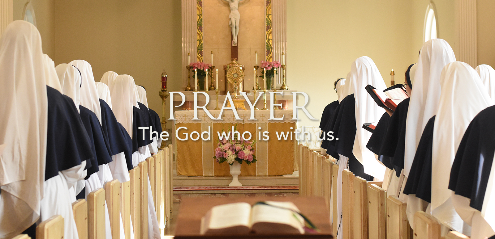 All of our common prayer is prayed before the Blessed Sacrament.  We spend four hours each day in prayer, including a daily, common Eucharistic Holy Hour, the Rosary, periods of meditation, the Holy Sacrifice of the Mass, and the Liturgy of the Hours. We also spend time each day in spiritual reading. All the convents reserve one day a week and one Sunday a month as prayer days spent in silence with extended hours of adoration of the Blessed Sacrament.